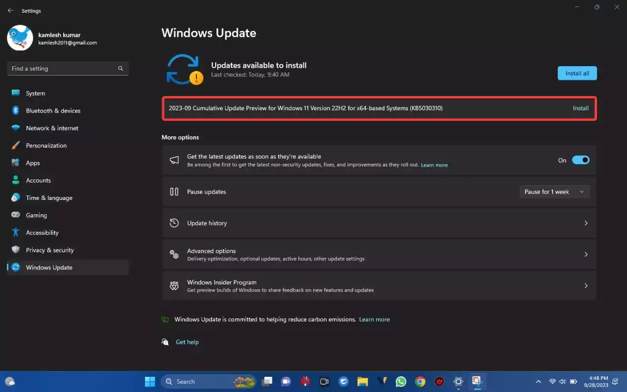 If you want to access the Windows 11 23H2 update, which includes additional features and a new build number, you can do so by following these steps:-