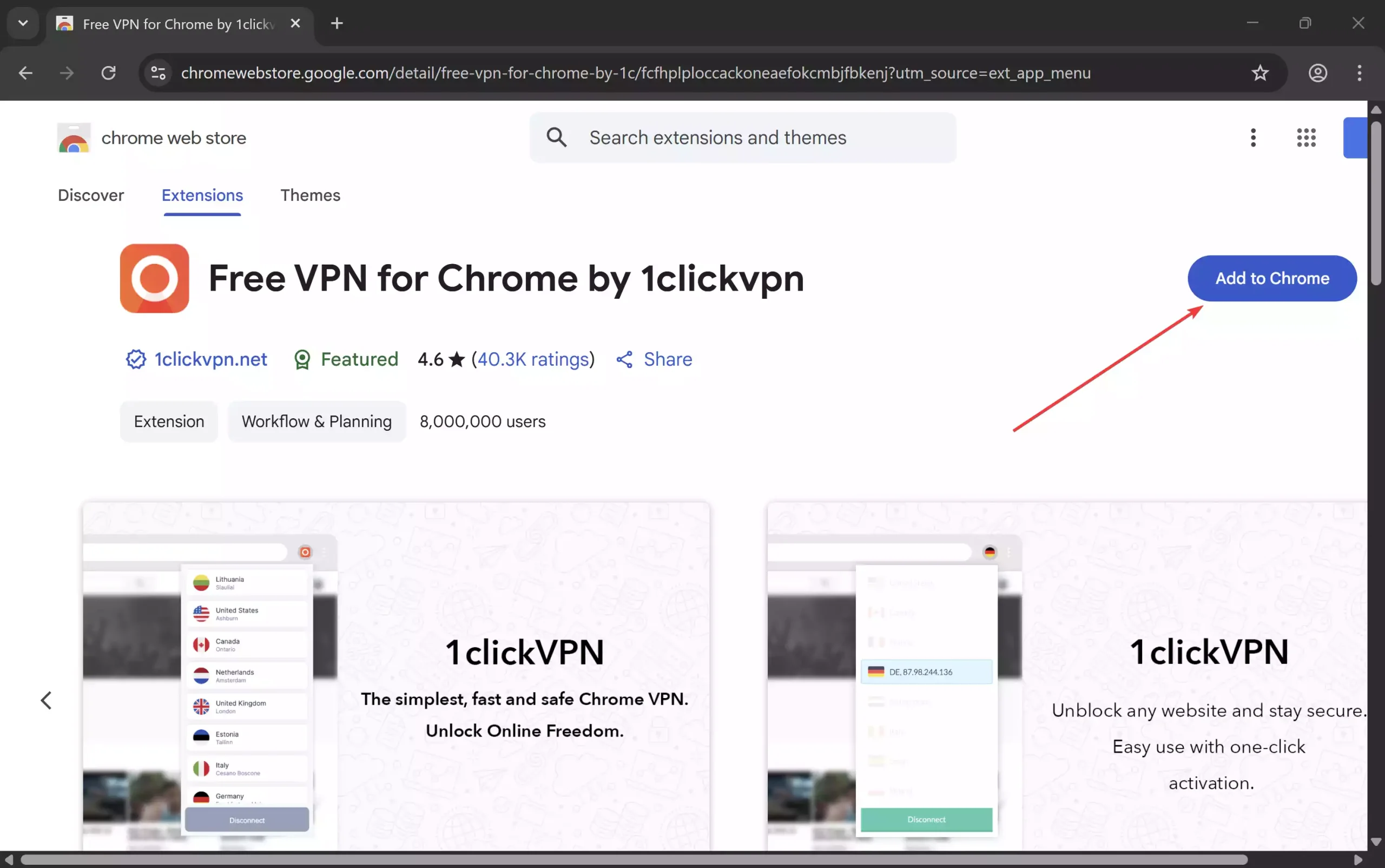 Step 3. Then, search for the extension you want to install, such as Free VPN.